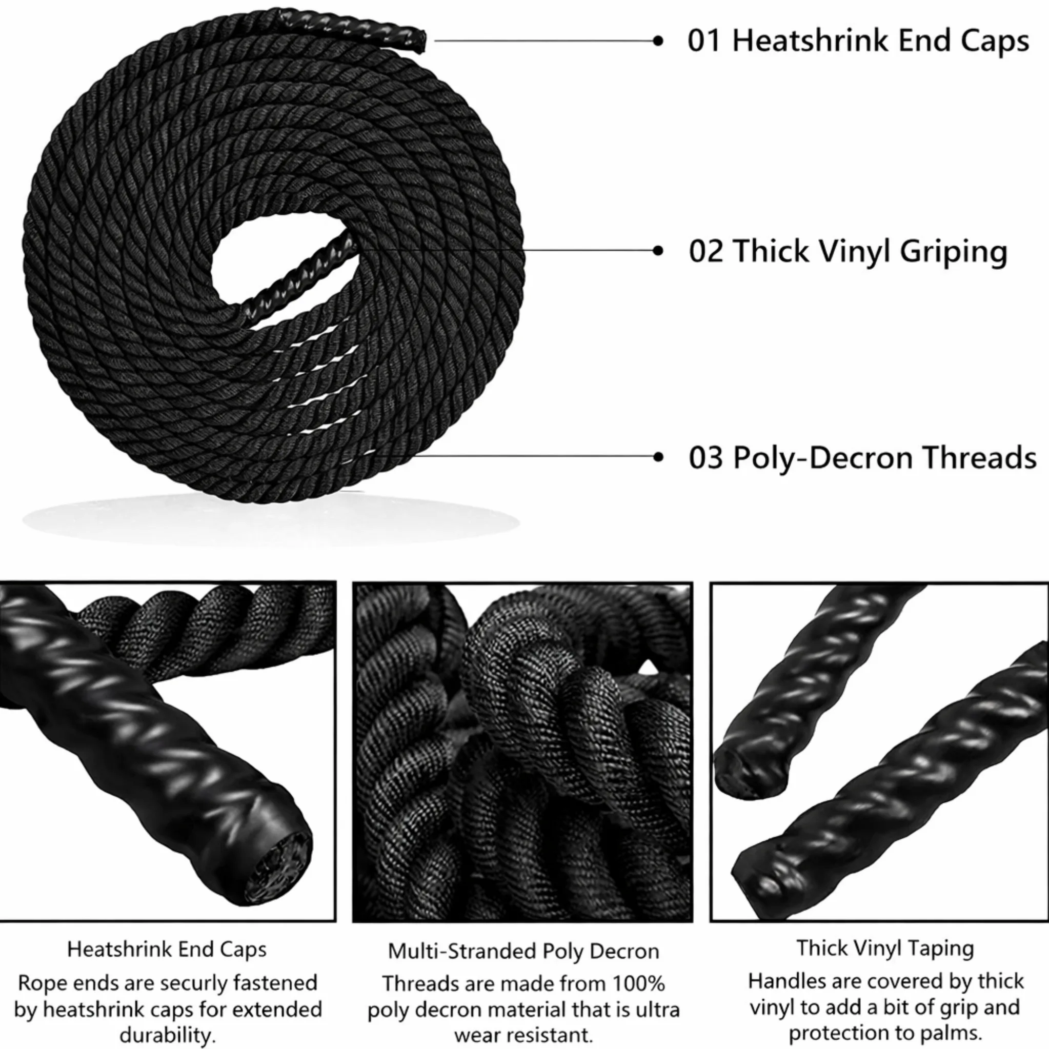 Made from high-strength coated polyester fiber, the rope is densely braided for maximum durability and flexibility. Knurled handles provide a secure, non-slip grip — even during heavy, high-speed sessions.