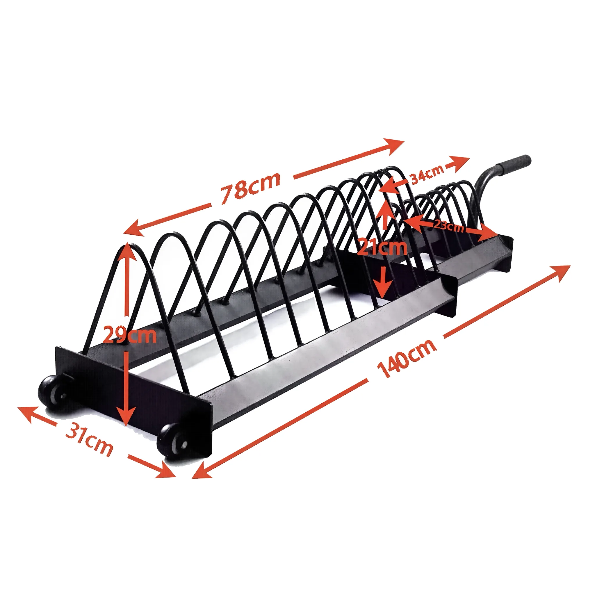 The GravoMax Plate Toaster Rack offers a single, versatile solution for organising every type of plate — from full-size bumper plates to smaller incremental plates. Its open, slotted design makes loading and unloading quick, while the wheeled base ensures effortless mobility.