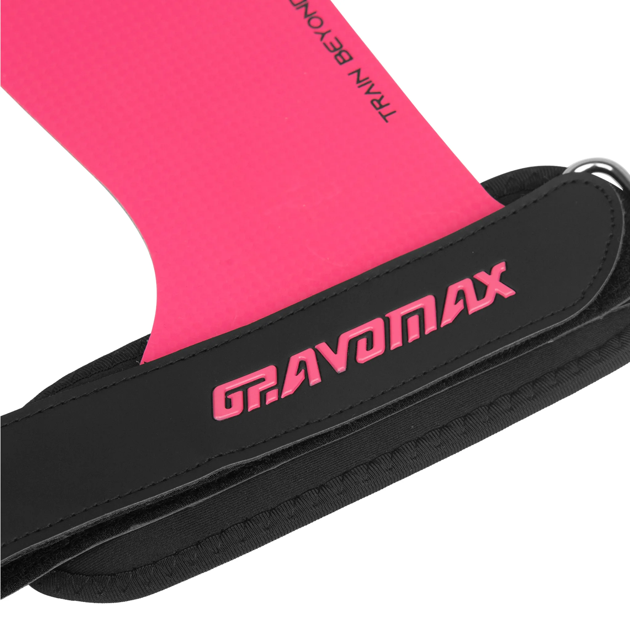 GravoMax Chalk-Free Hand Grips (Pink Edition) — non-slip, durable synthetic leather grips with finger cutouts and adjustable straps for pull-ups, CrossFit, and bodyweight training.