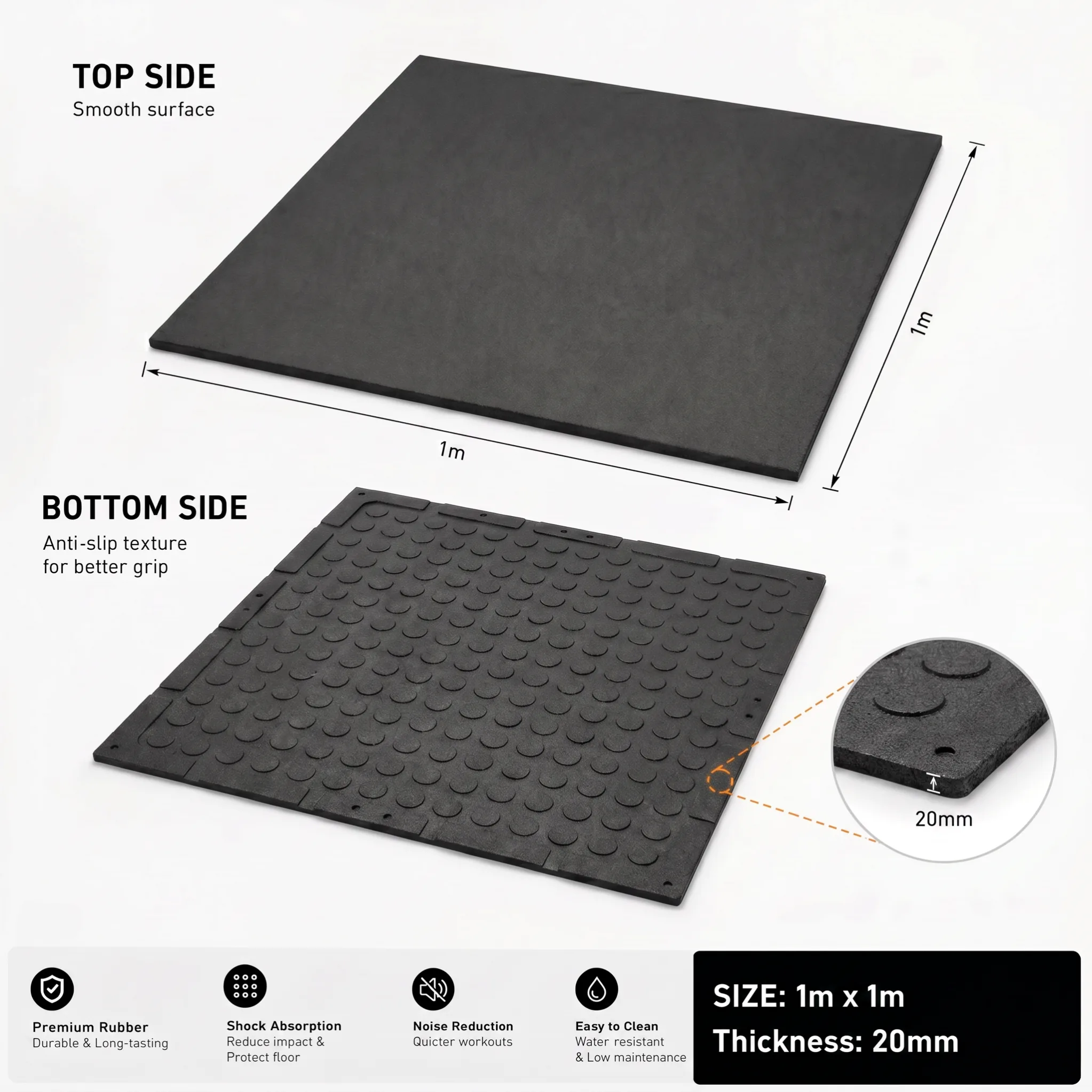 - Heavy-Duty Profile: A massive 20mm thickness designed to absorb extreme kinetic energy from heavy free weights.