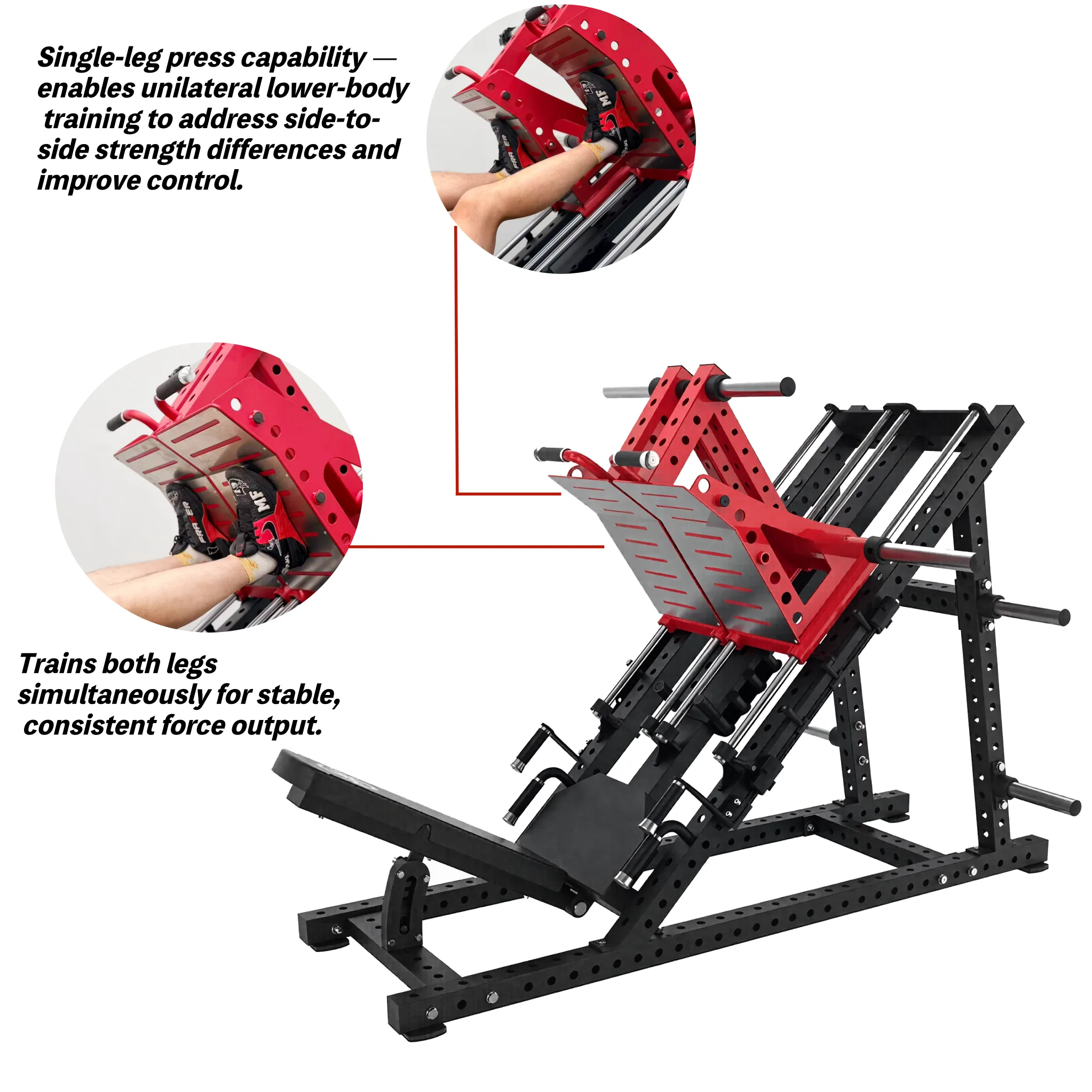 Featuring a dual-track iso-lateral system, it allows independent or synchronized leg movement — promoting balanced muscle development and superior control through every phase of the press. Built with 75×75×2.5 mm and 50×80×2.5 mm steel tubing, this machine supports professional-level workloads with seamless motion and absolute stability.