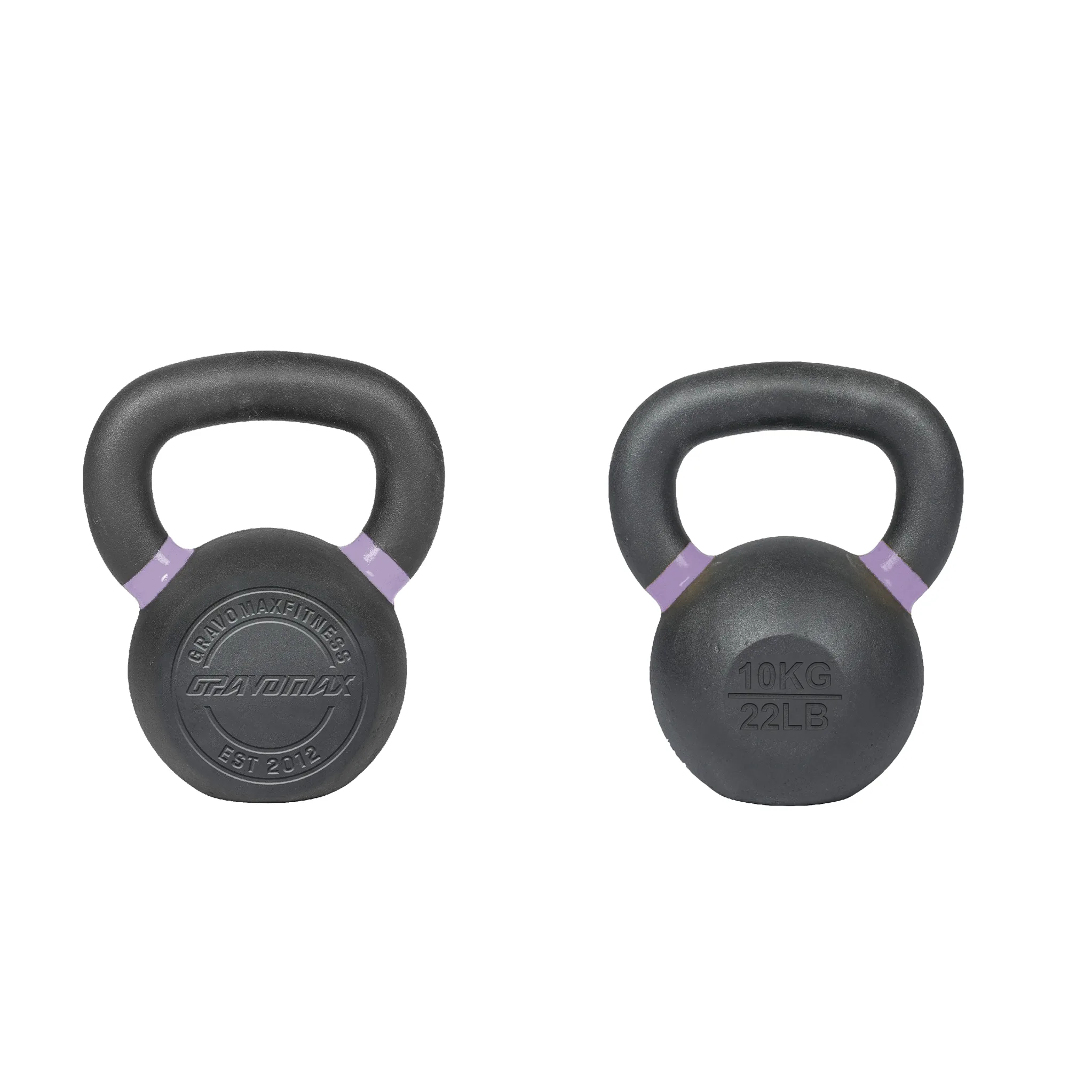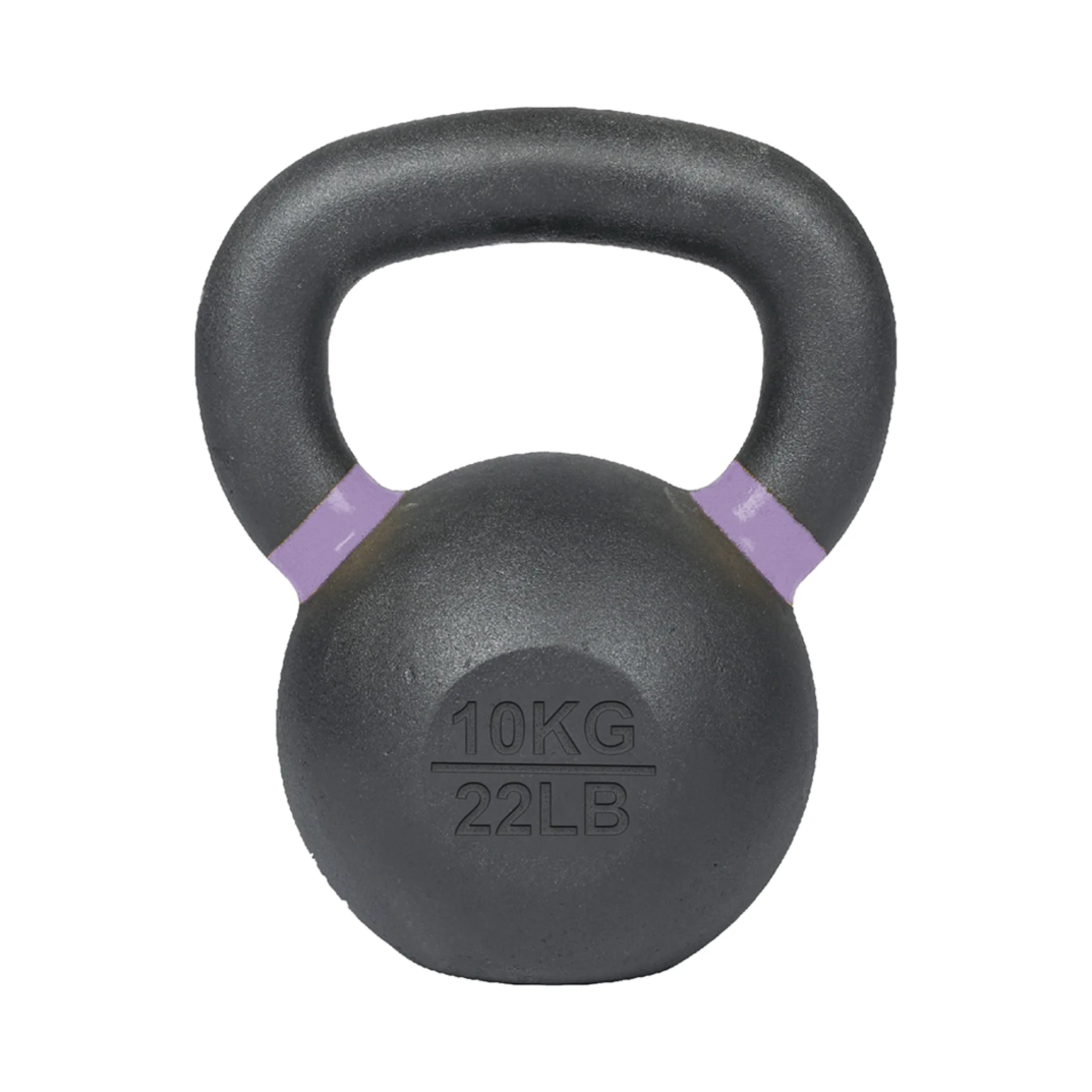 Solid 10KG cast-iron kettlebell with matte powder coat, color ID ring, and dual KG/LB markings. Provides balance, control, and consistency for both conditioning and strength sessions.