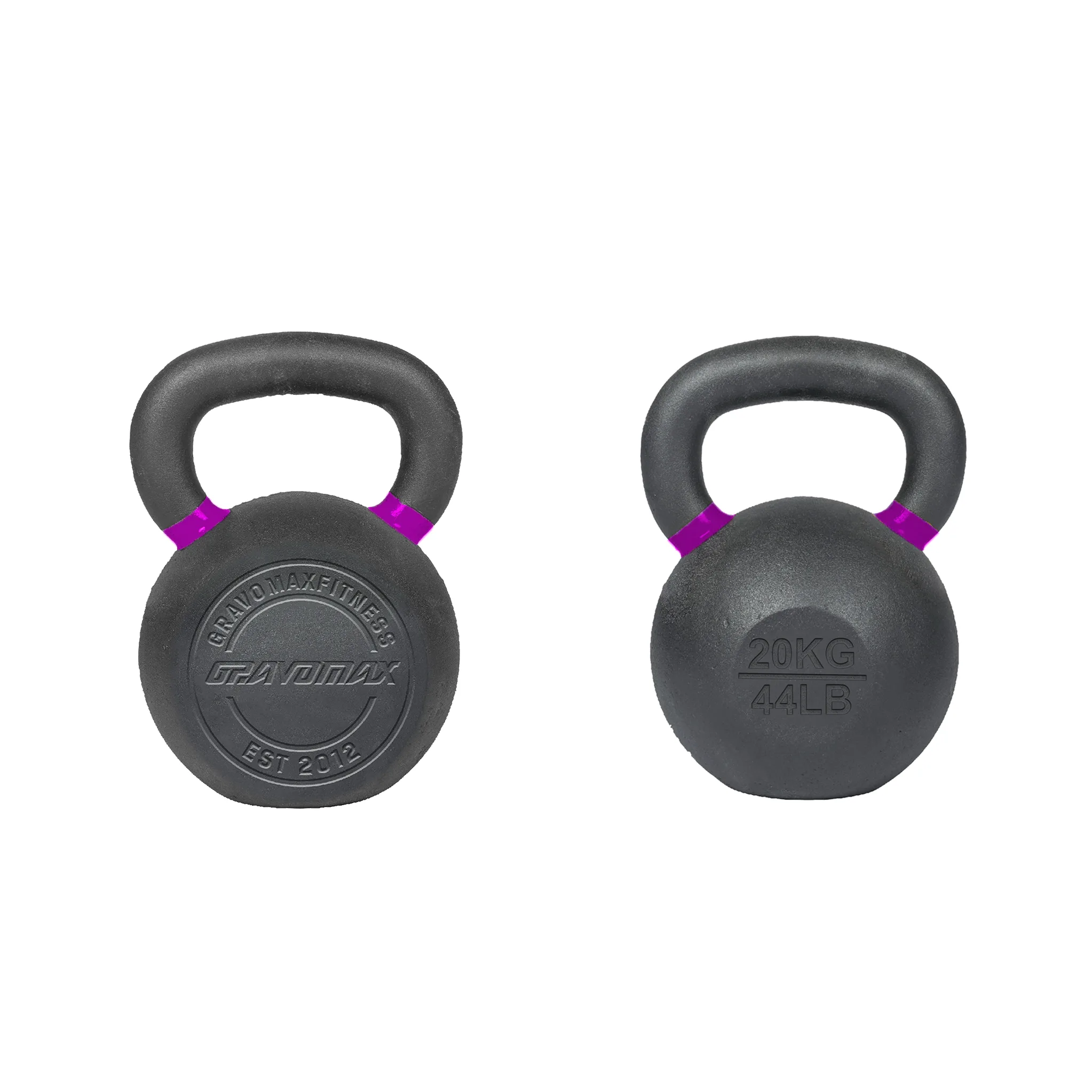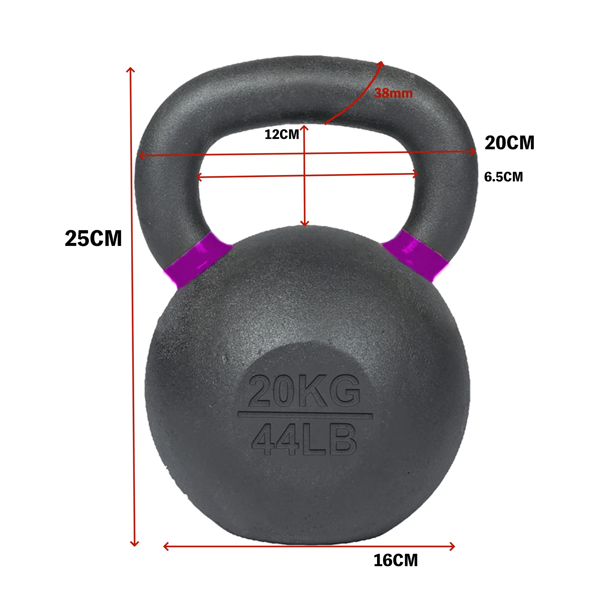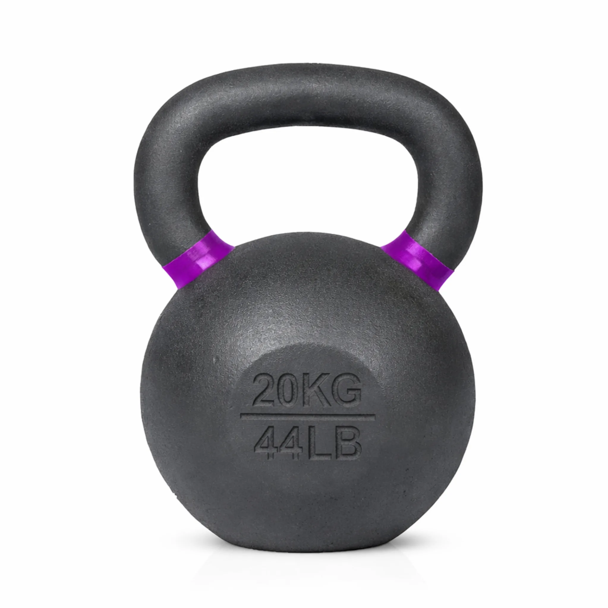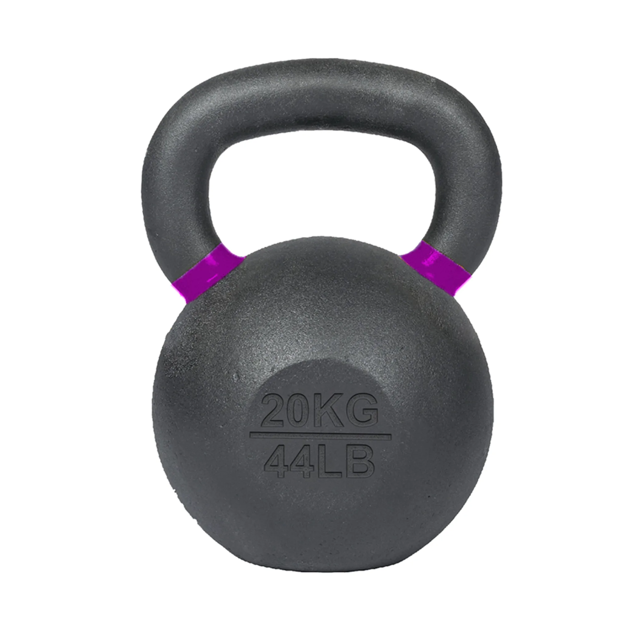 20KG solid cast-iron kettlebell with matte coating, color ID ring, and dual markings.