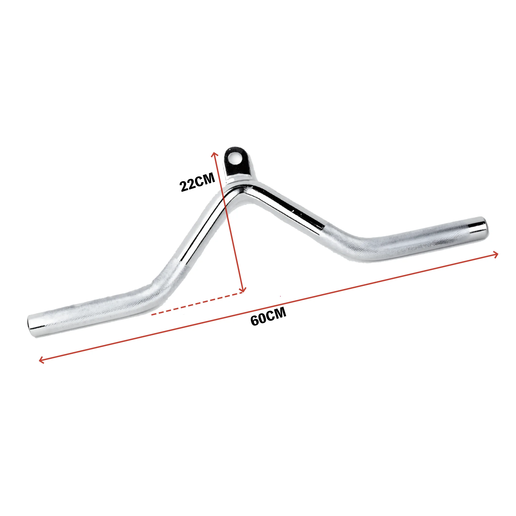 Built for rows, pulldowns, and pressdowns with non-slip knurled handles and heavy-duty chrome finish.