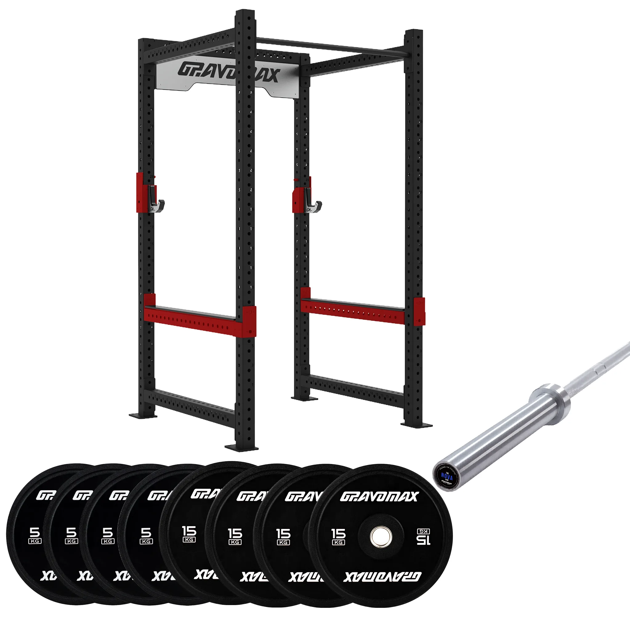 A complete power cage package for serious home training, including a 20kg Olympic barbell and 80kg bumper plates. Built around 50mm Olympic standard for clean compatibility now, and easy upgrades later.