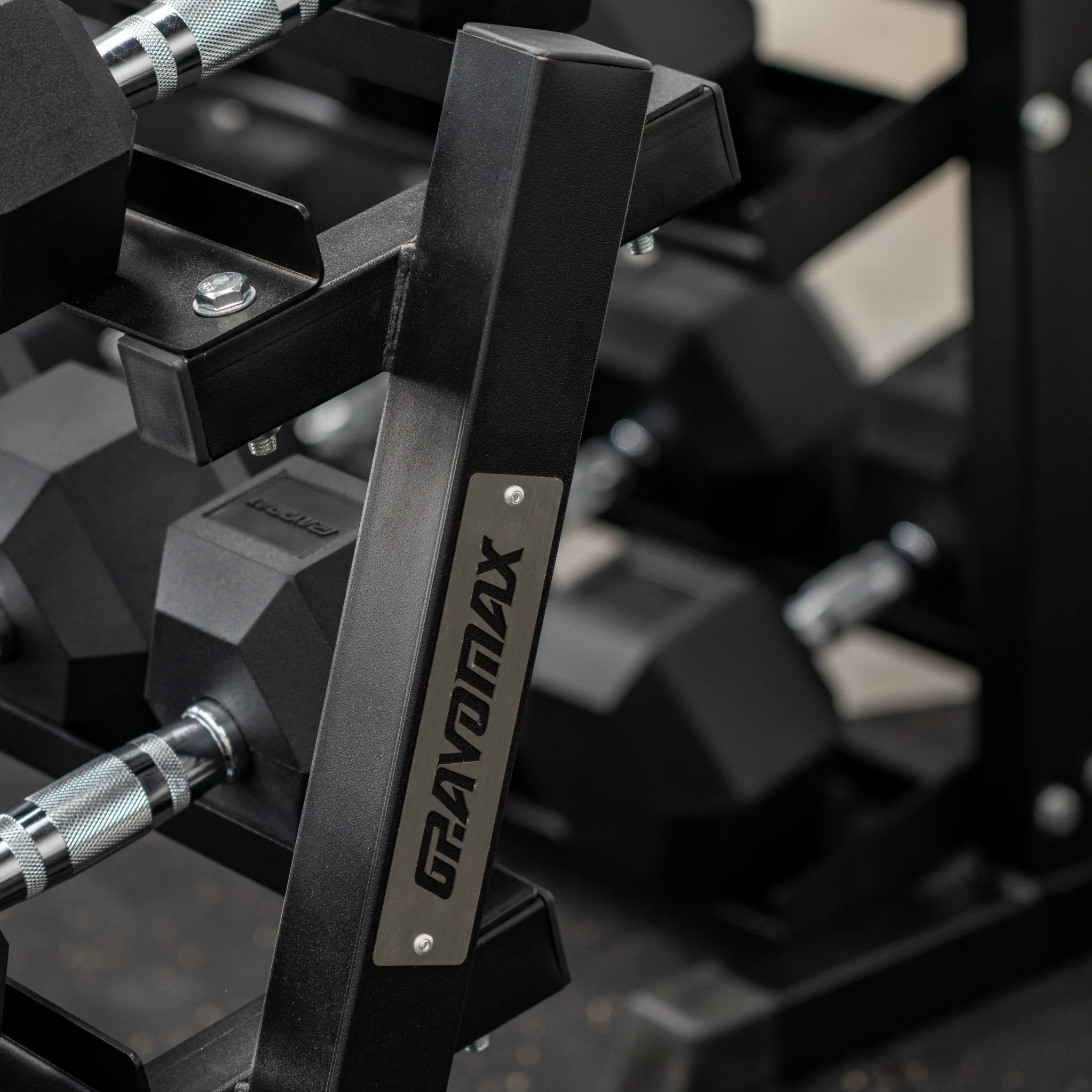 The GravoMax Rubber Hex Dumbbell Set with 3-Tier Rack combines a few set of dumbbells with a compact, lite rack that keeps everything organised and within reach. Whether you’re building a home gym or upgrading a commercial studio, this set gives you strength, variety, and space efficiency.